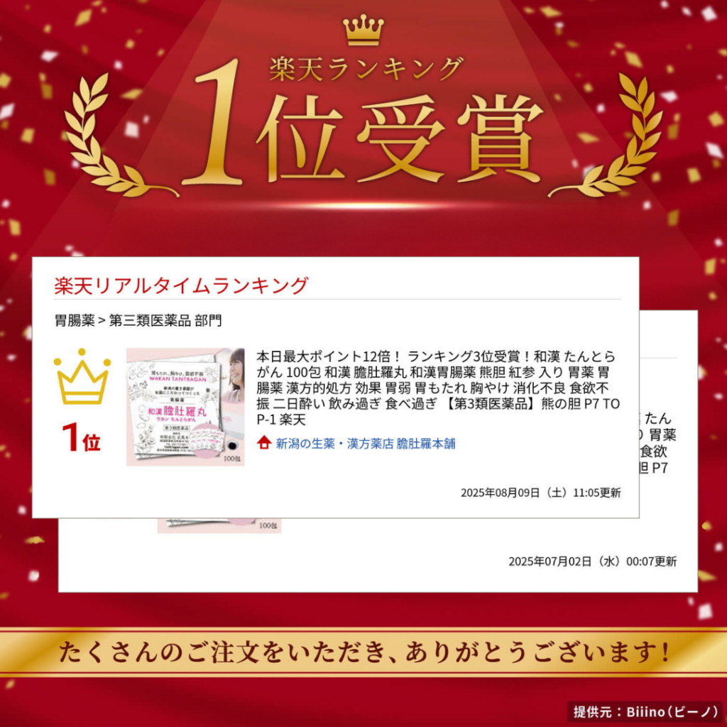 膽肚羅丸(たんとらがん)は酒蔵数No.1の新潟のご家庭の常備薬としてもご使用いただいている和漢胃腸薬です。